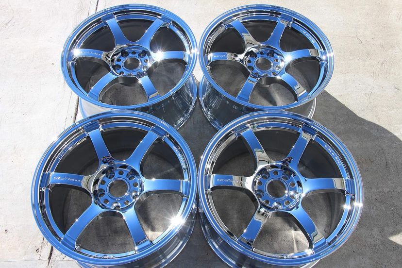 These Rays GramLights 57DR wheels feature a Blue Gunmetal finish with Triple Chrome Barrels and Lips made by Volk Rays Japan .This GramLight 57DR setup comes in 18×9.5 with a +38 offset. The Rays 57DR is a 1-Piece Forged wheel that features exposed lugs and same specs as their Volk rays cousins TE37 SL Black cousins .These beautiful 6 spoke wheels are available in a 5×120 , 5×114.3 (5×4.5) and More configuration.