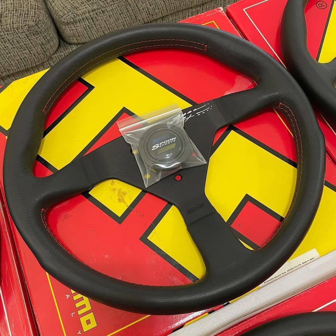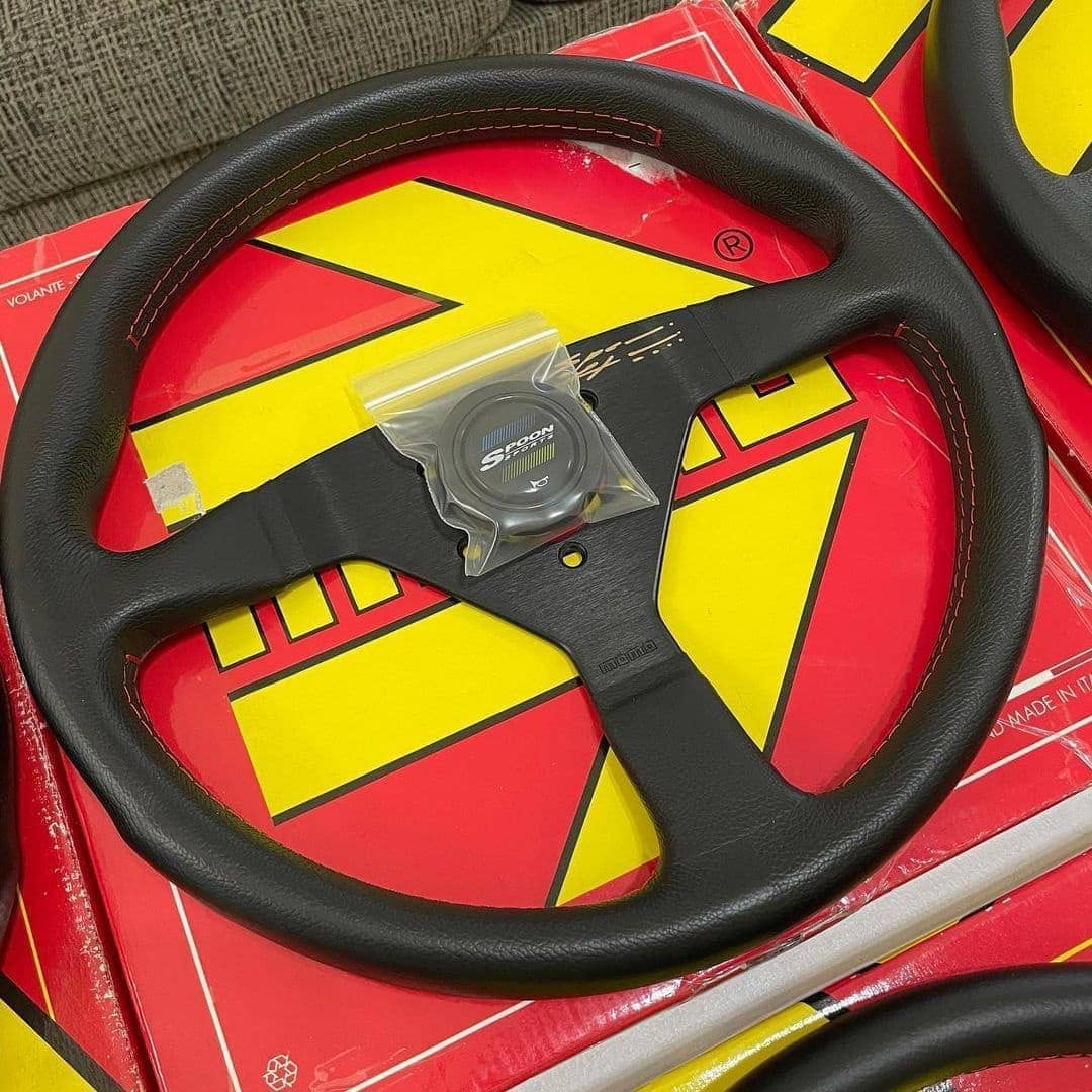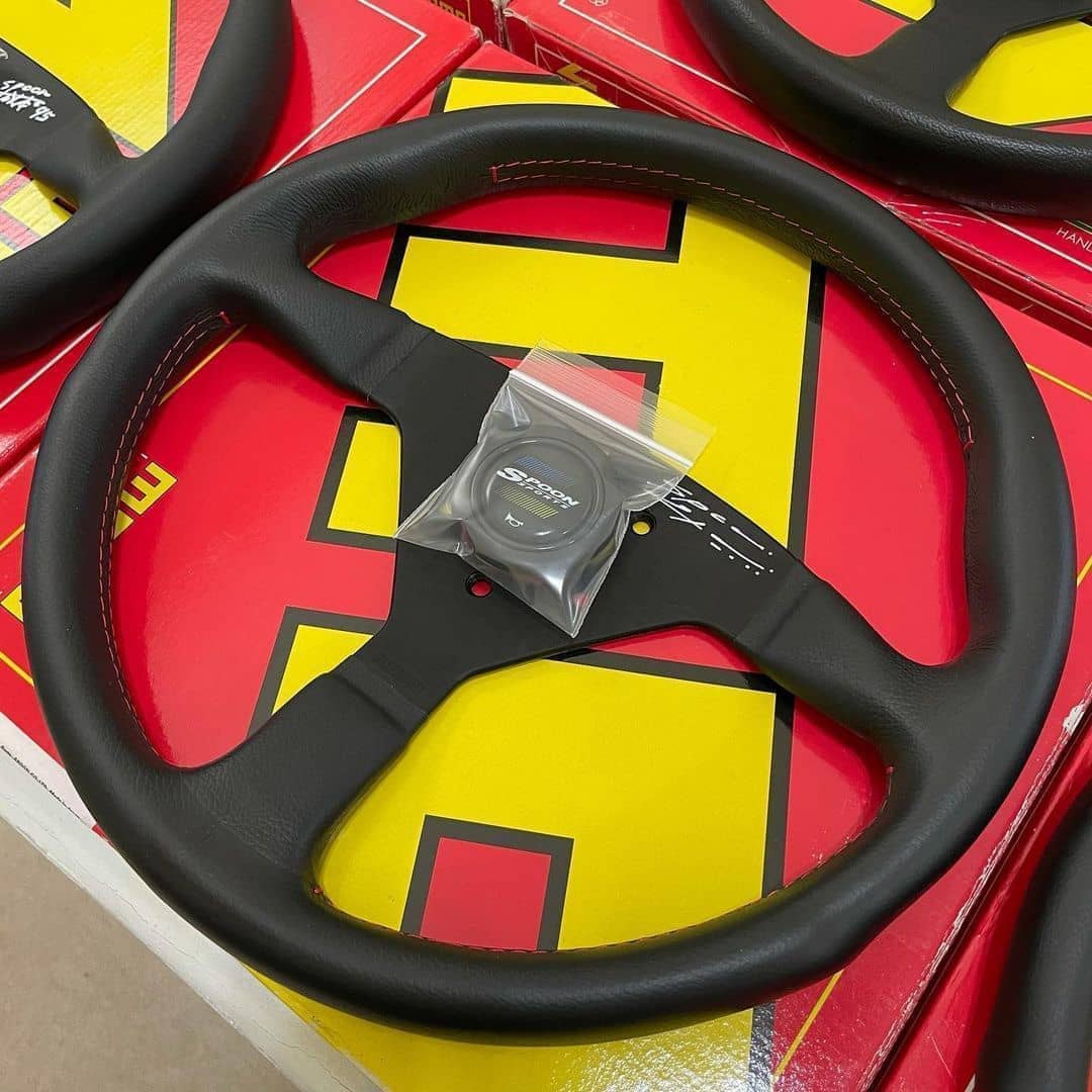 This Spoon steering wheel offers better grip and driving feel over the stock unit. 340mm in diameter and is manufactured by Spoon Sports with custom red stitching and authentic Spoon Sports horn button.